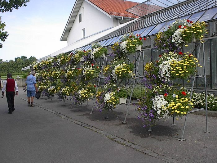 A 13 Eine Wand mit bunt bepflanzten Balkonkästen