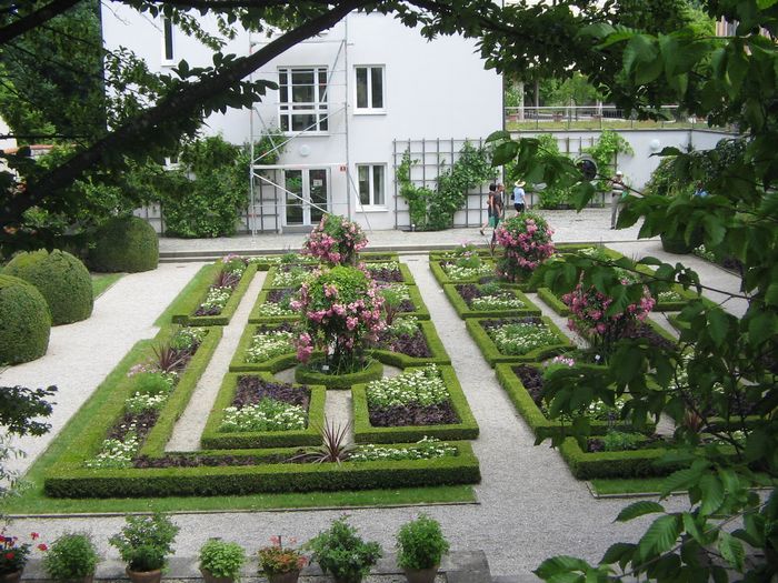 A 27 Der Buchsgarten präsentierte sich zeifarbig mit den Rosen als Akzent